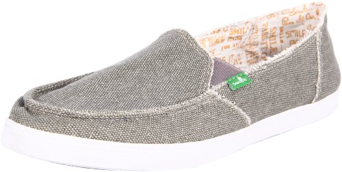 Online Exclusive! Cmon and get your feet into these June Bug Sanuks! Slip on style for your on-the-go lifestyle. Flexible vulc-lite construction for comfort. Canvas exterior with elastic stretch fit, raw frayed seams. Green Sanuk patch stitched on side. Gum rubber happy face embossed outsole.